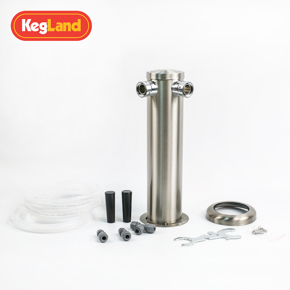 双孔酒柱套装 - KL00482 此双孔酒柱套装适用于我公司的第四代、第五代单门啤酒机、三、四门豪华冰柜,可用M5规格的螺丝安装在上述啤酒机、冰柜的预留孔位上。 此套装包括如下配件: 1、一个双孔不锈钢酒柱 2、二个可与duotigh...
